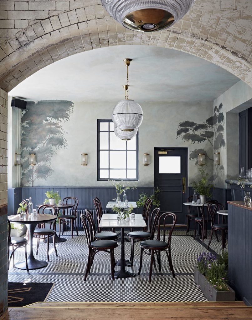 Sally Conran Studio was asked to design a rustic interior with a stylish industrial edge, for restaurant and organic wine shop, Wilding. This was achieved through the use of palette, statement lighting, textured tiling, rustic materials and industrial furnishings. The key design consideration was to create a series of distinctly new, atmospheric drinking and dining spaces with the organic and sustainable Wilding ethos at the heart of these designs. Essential priorities were a limited budget; maximising the number of covers within the dark tight spaces and creating a natural flow throughout. This was successfully fulfilled and the client was delighted.