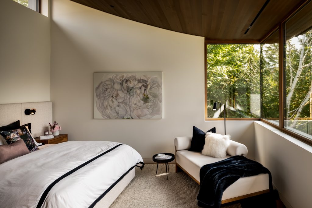 Eugenia Lake House, designed for a young family, serves as an all-season retreat ideal for skiing, hiking, and enjoying the lake. The main dwelling stands as the heart of this sanctuary, while a separate gym building offers a dedicated space for wellness and recreation. Built with passive house and sustainable design principles, this generational home emphasizes quality family time, extended stays, and serene lake views. The interior features modern simplicity with clean lines, minimalist lighting, warm wood tones, and playful pops of color that harmonize with the natural environment.
