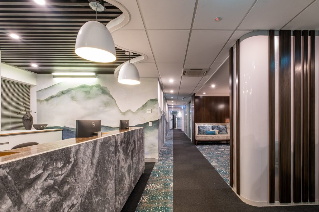 Simone van der Plas, PDINZ Interior Designer, oversaw the renovation and re-branding of a dental practice according to the brief which was to be natural, nature oriented but with relaxing lounge like feel. Achieving a fresh, nature-inspired, and loungey interior look was achieved through the use of custom-made wallpaper, textural carpet, bespoke furniture, and lighting. The designer utilised tactile, durable textiles and combined stone cladding with matching timber veneer for a sophisticated waiting lounge. The new name and logo represents the overall look. The overall design captured the essence of the brief, creating a unique and inviting space.