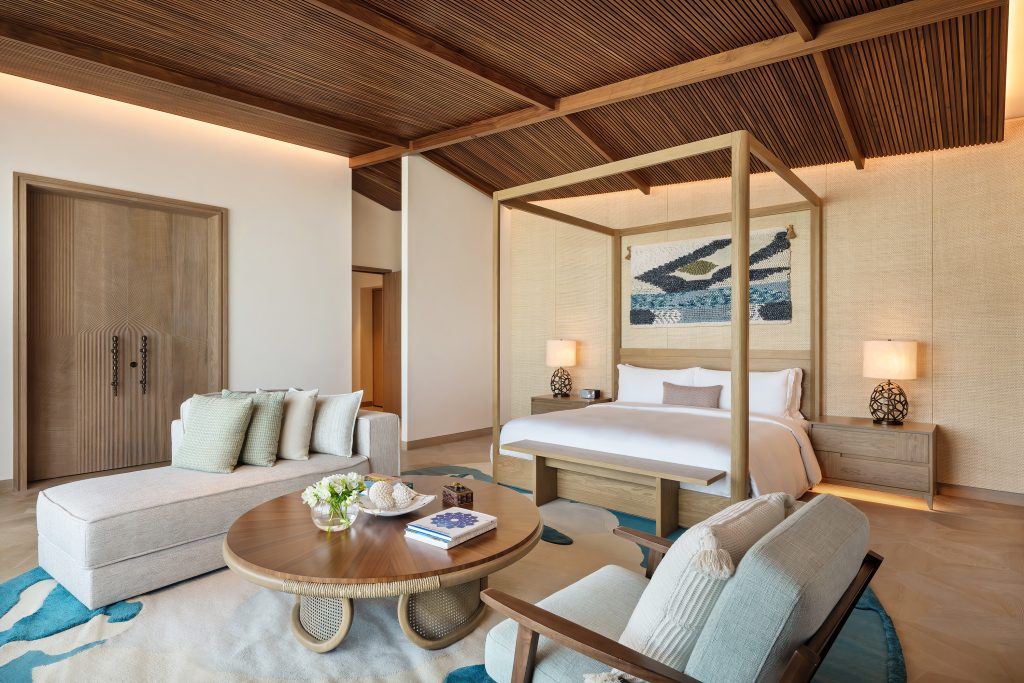 Nestled in the pristine beauty of Ummahat island off Saudi Arabia’s Red Sea coast, the St Regis Red Sea Resort offers a luxury stay that is in harmony with nature. Blending opulence with eco-conscious design that bides by LEED platinum guidelines, the retreat offers a unique interpretation of the renowned St Regis experience within an island resort setting. The interior design has woven a unique identity for the property that tells the story of the area’s natural beauty and creates an experience of laidback ‘barefoot luxury’.