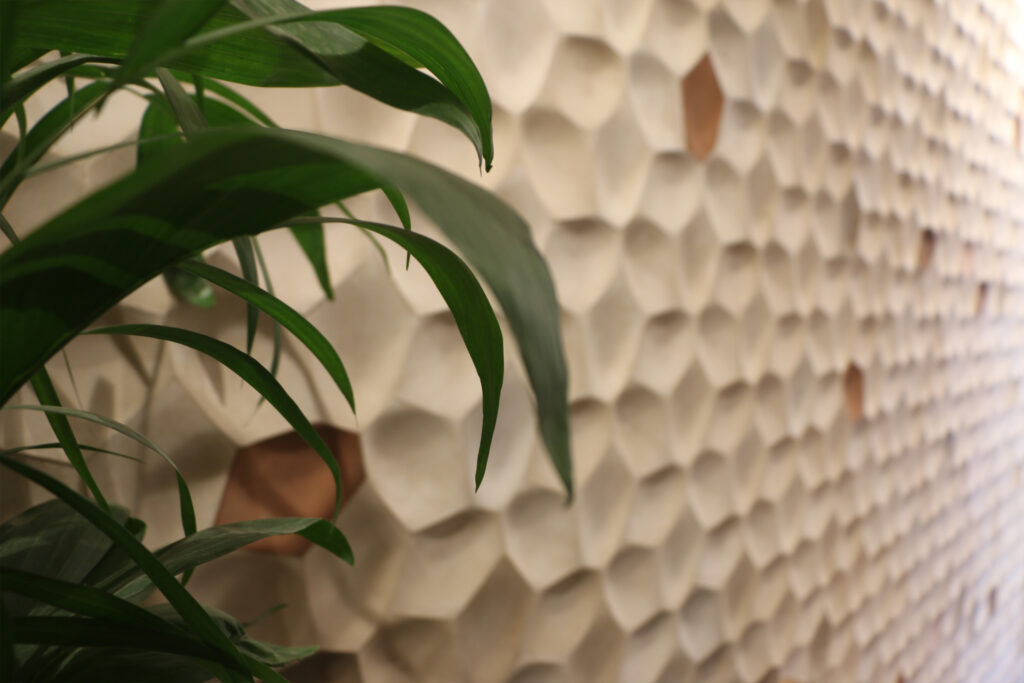 Criaterra is a zero-waste tile made from 100% natural materials with a 90% energy saving over ceramic products. The wall tile challenges the conventions of production and design and is 100% biodegradable, taking a bold step to product circularity.