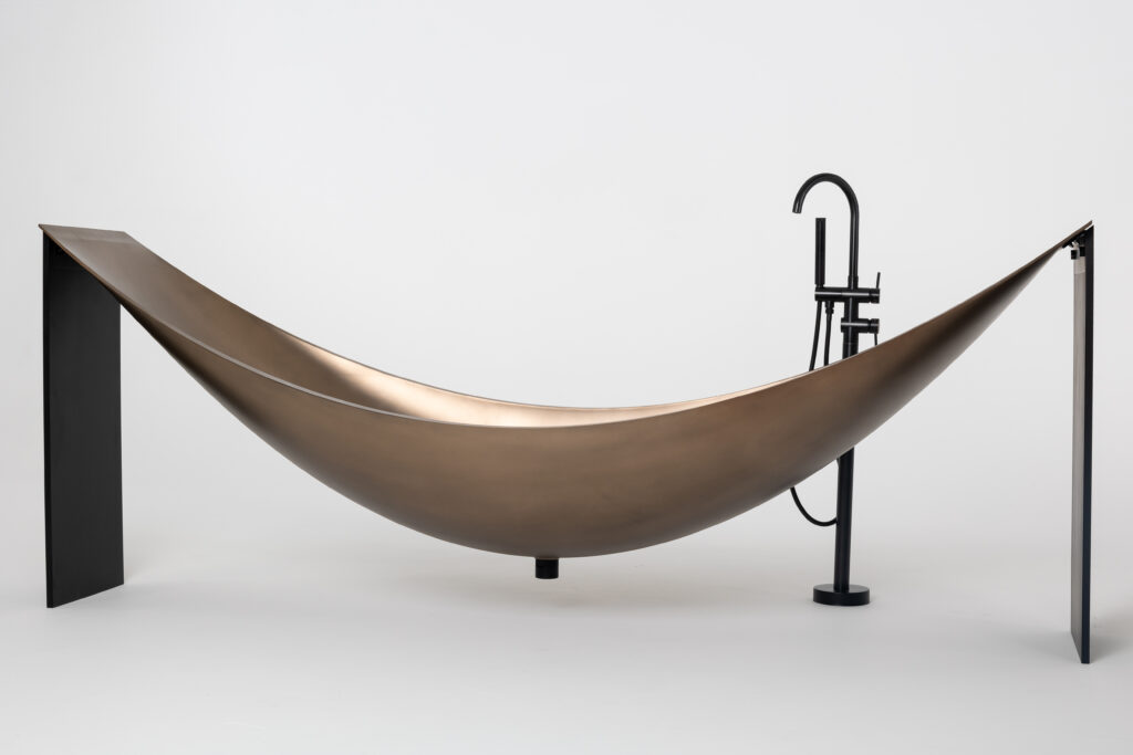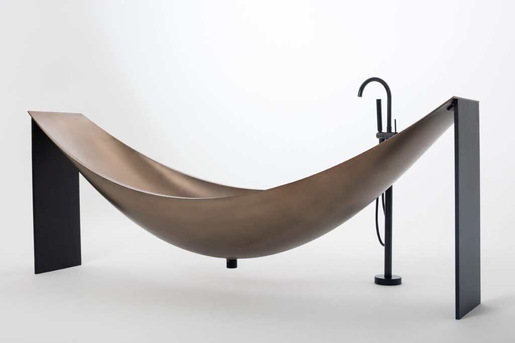 With its elegant lines and sculptural form, the Hamaca Bronze hammock bath combines style, relaxation and escapism in beautiful bathrooms.