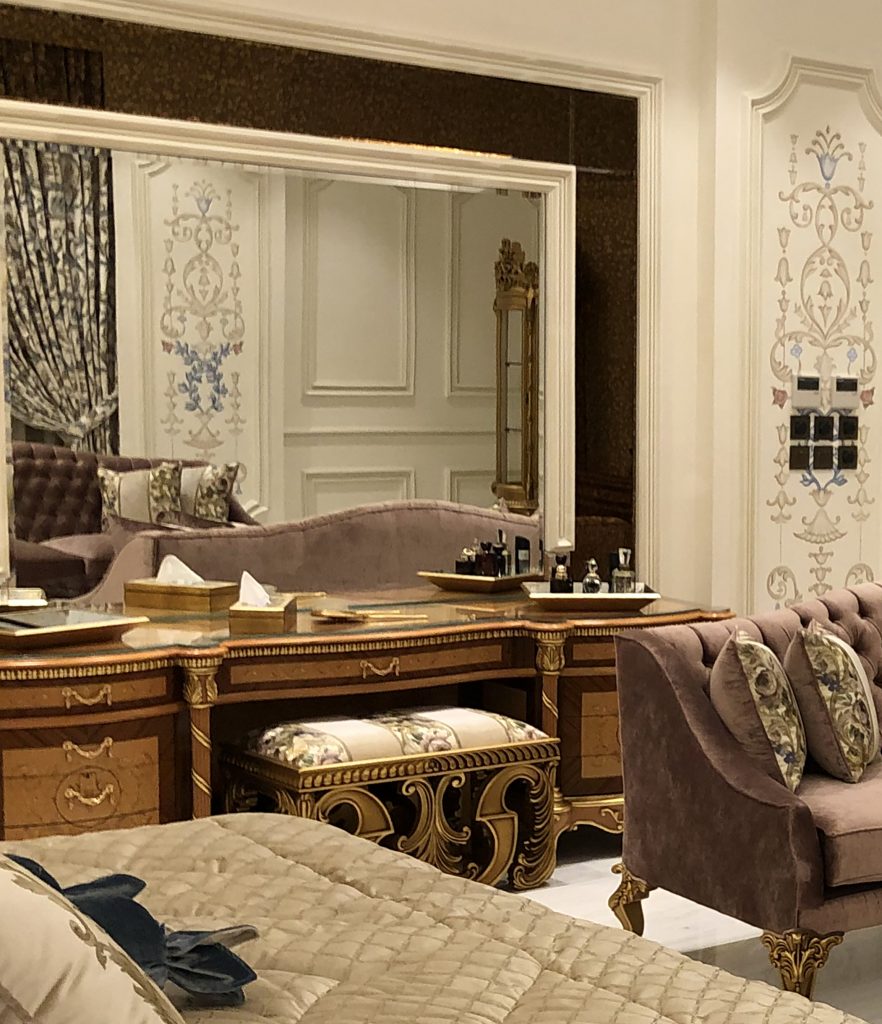 All products are hand made and manufactured in Egypt in the Archiform Consultants workshop. This classical collection is for a Master Bedroom and includes both modified and original classical pieces. The collection includes a Master Bed; night table; dresser; TV unit; bench; sofas; coffee tables and display units. All items are made from natural wood and hand carved with natural veneer.