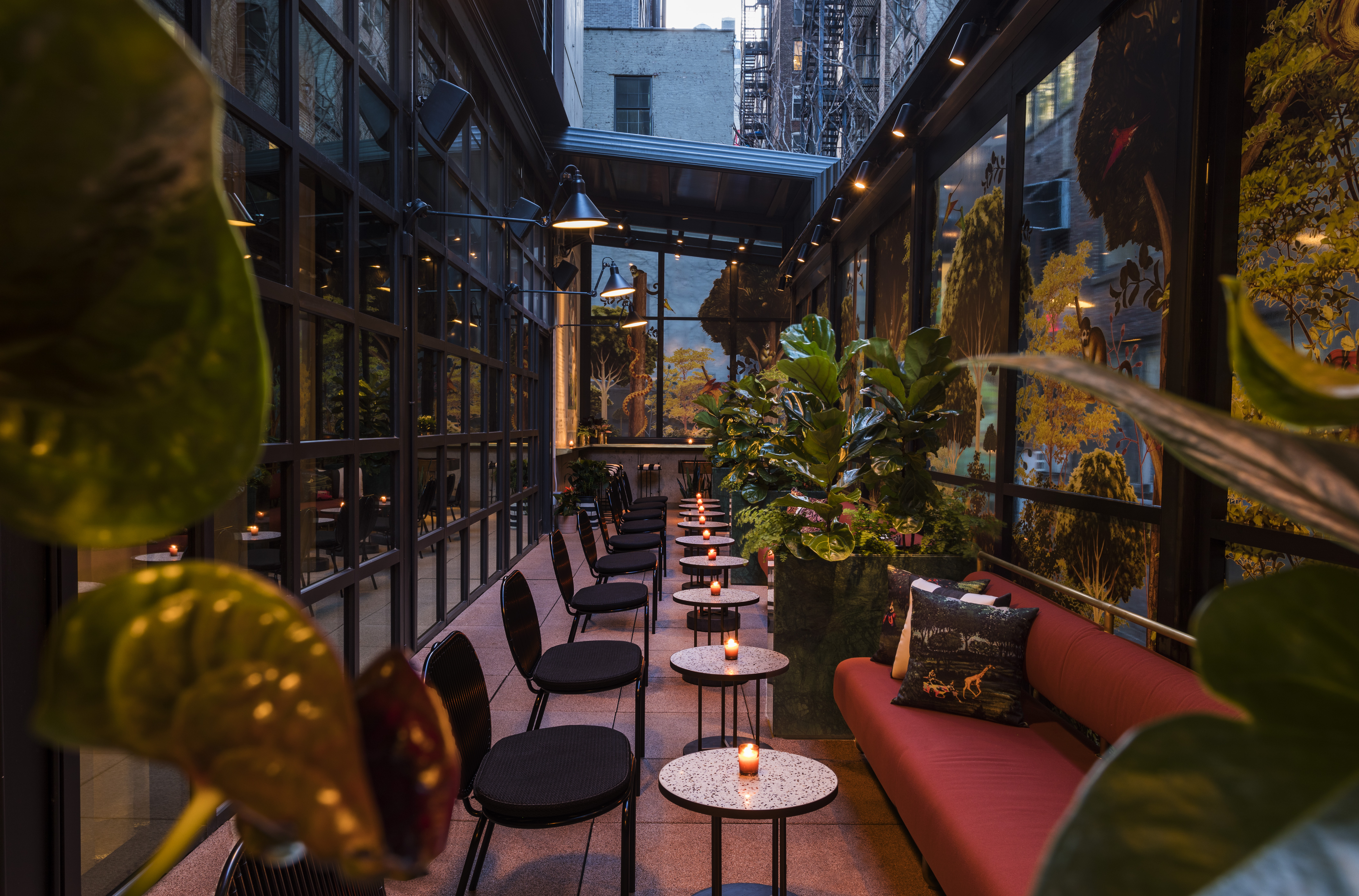 At the 349-key Moxy Chelsea hotel, guests encounter botanically inspired design and crafted romance seen through a thoroughly modern lens. Layers of rich colour, material, pattern and form combine to create a unique design at Feroce Ristorante, Bar Feroce, and the Fleur Room. These spaces appeal to today’s youthful global traveller or sophisticated city insider who craves a contextual sense of place as well as escape. The resulting design cocktail is a highly sophisticated and curated environment that embraces today’s multi-tasking, multi-communicating, multi-experiential world. The spaces encompass the ground floor Italian restaurant, which feels like a modern interpretation of a secret spot off of a narrow side street in Rome; the conservatory-like bar and lounge on the second floor and the indoor-outdoor rooftop bar that celebrates views of the Empire State Building and New York City skyline.