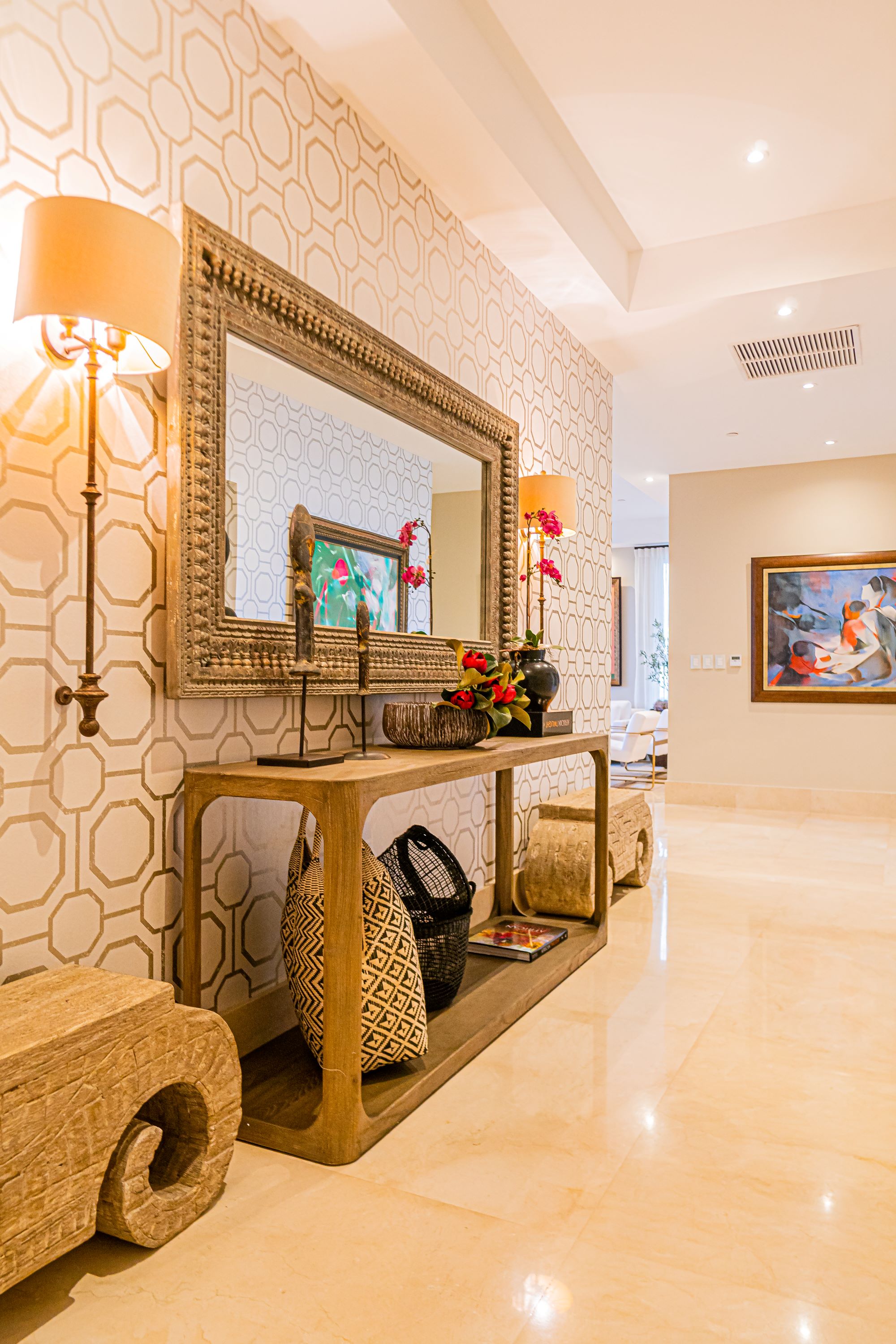 Serenity and simplicity were the main goals for this city home. For this project we used a natural colour palette and earthy tones. This home sits on the thirteen floor of a contemporary Architectural building located in one of the most prestigious neighbourhood of Santo Domingo Dominican Republic. The design studio has worked for this project with stores like; Restoration Hardware, Graham & Brown, Casa Marti and Sherwin Williams paint for the finishing touches. For the Lighting design the sister company IDA SRL, specially designed the technical lighting.