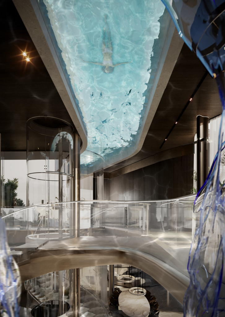 The client has a passionate love for the tropics and lagoons. It was vital for him to get a non-classical, open and bright space filled with art installations but not overloaded with them. He also requested a tropical atmosphere, glossy and coloured accents, metal and natural rough-cut stone, curved and organic shapes, and well-designed interior landscaping. ISTO studio harmoniously combined all wishes in interior solutions.