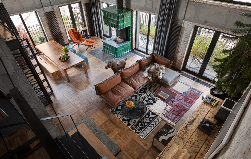 Hayloft space is not only a friendly dwelling for the family and friends, it’s a mix of a restaurant, experimental kitchen, bar counter, art exhibit, show-room and DJ-place. Initially the object was a non-residential building designed for commercial real-estate with no heat insulation, no utility systems, no energy saving solutions and lack of balconies. Despite the above mentioned, it’s a huge inner space with facilities and gorgeous riverbank within walking distance which became the determining factor of creating a dwelling space.