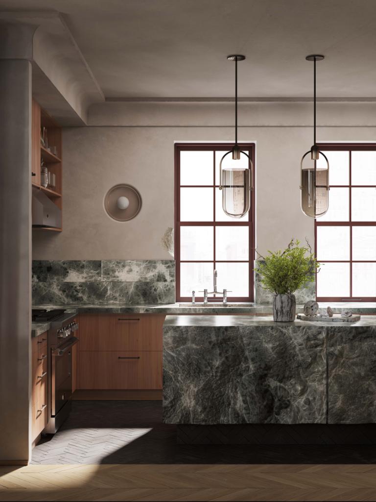 Designed by Artem Kropovinsky of Arsight, this interior project in Tribeca curates an intuitive and personalized living space that beautifully interweaves the rough charm of natural materials with high-end features. A testament to creative craftsmanship, the apartment is imbued with unique elements such as hand-troweled fluted plaster walls, a hand-carved kitchen island, and heavyweight linen curtains. The design, valuing authenticity and embracing imperfections, tells a compelling story of human touch and history. This innovative fusion of refined elegance and rustic appeal, underscored by a commitment to sustainability, offers a refreshing divergence from prevailing trends.