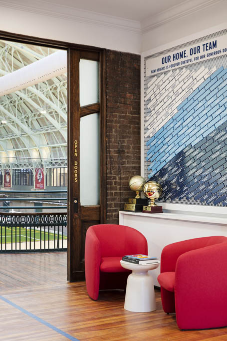 Fogarty Finger designed the Brooklyn, NY headquarters for New Heights Youth Inc., a non-profit sports-based youth development organization in New York City. The project involved developing the interiors, signage, branding elements, and art coordination behind the organization’s new home in the Major R. Owens Health & Wellness Community Center – previously known as the Bedford Union Armory.
