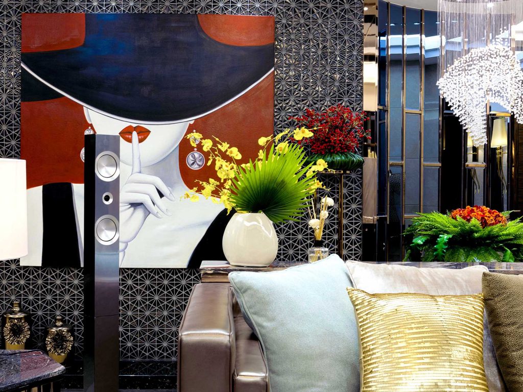 This two storey apartment with two balconies is located at top of the building. For the layout, it is divided into two main spaces: public and private. The first floor is more public with entrance, dining/living area, kitchen, maid’s room and balconies. The second floor includes a private area with a family room and three bedrooms. In both floors, the full-length windows fill most of the areas, feeding off the interior with natural lights, ocean view and city skyline. Next to the living room, there is the big balcony that is designed as a relaxing area with jacuzzi, seating area and a decorative horse facing the outstanding view.