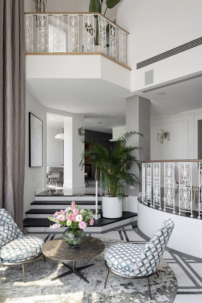 The ‘Voice of generations’ has become a real challenge for our team. Having lived for 20 years in the house, the family realised that they have emotionally overgrown the current interior design; their lives and hobbies have changed. Therefore, the interior design requirements for the house are now different. The client’s family is quite hospitable. They often hold receptions, social events, and holiday celebrations. Thus, the “The Great Gatsby” film and some Art Deco interior design pictures became the reference. The client has a hospitable family, so they asked to furnish the lounge that would be perfect for dinner parties. V.Concept studio created a brand new kitchen plan to consider the client’s desire to cook in the family circle. Apart from the kitchen counter, the team worked on the diner overlooking the garden and the lounge with a bar. After a delicious dinner, the family could relax at the fireplace.