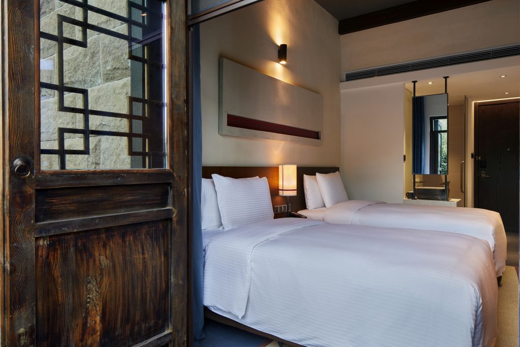 The hotel is situated in the ancient Miao village of Danzhai in Guizhou Province. It is located at the foot of the mountains and overlooks a large body of water. The ground floor has the overall layout of a Chinese courtyard and is composed of a lobby, a restaurant, a conference room, a gym and three courtyard suites. The first and second underground floors progress down the mountain toward the surface of the lake and are entirely composed of guest rooms. These rooms are ideally situated and offer expansive views of the idyllic mountainside scenery. The entire hotel blends the architectural style of traditional Miao dwellings with the beauty of the surrounding natural landscapes. Through the liberal application of quintessential Miao imagery and colour schemes, the hotel vividly represents the ancient culture of one of China’s cultural minorities while at the same time creating a leisurely, relaxing environment.