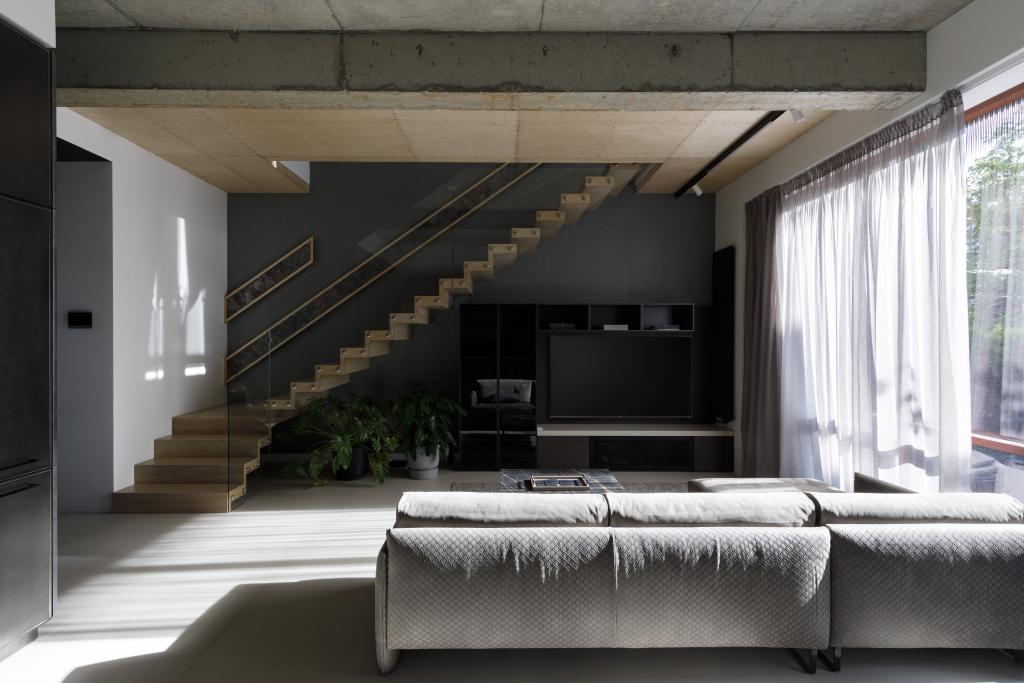 V.Concept was given the task of designing a townhouse for a young couple with a teenage child. The project managed to significantly increase the living space of the house, and as the interior style was chosen eclectic in a combination of modern style and loft. One of the advantages of the source was a large number of panoramic windows, but the task was to correctly plan the space and zoning to avoid the effect of “aquarium life”.